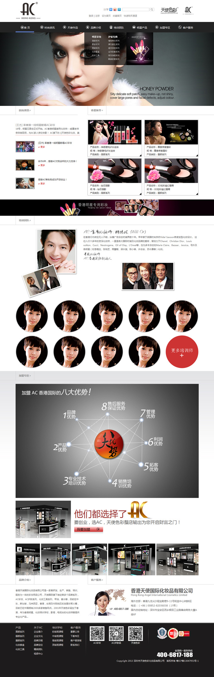 香港天使國際化妝品有限公司(簡稱:“AC彩妝”)旗下二個品牌: AC彩妝 天使色彩 香港天使國際化妝品有限公司是一家集研發(fā)、生產(chǎn)、銷售、培訓(xùn)、服務(wù)為一體的彩妝用品公司,天使國際旗下有經(jīng)營多個品牌系列,AC彩妝、AC護膚系列、化妝工具系列、甲油、香水等,目前在中東,新加坡,馬來西亞,香港,臺灣及內(nèi)陸地區(qū)的發(fā)展非?;鸨?,目前已在中國擁有2000多家銷售網(wǎng)點。